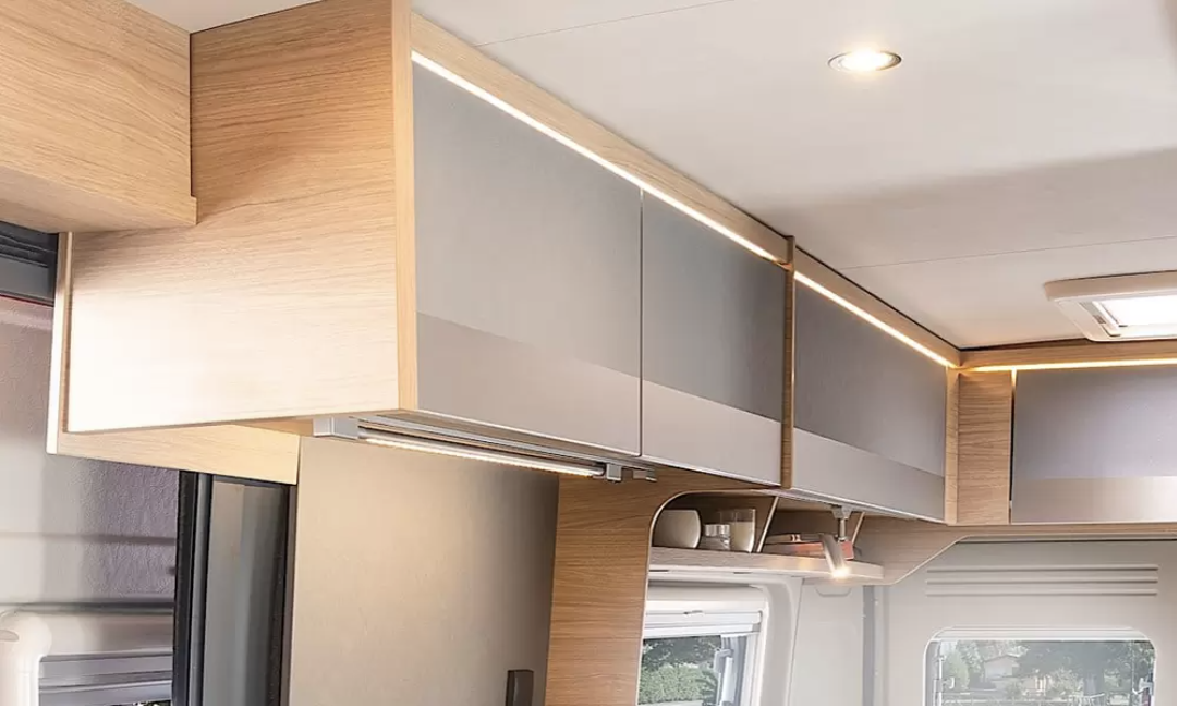 Laten we beginnen bij de koelkast – onmisbaar tijdens elke reis en een belangrijk onderdeel bij een camper kiezen. Een compacte koelkast onder het aanrecht is ruimtebesparend en biedt vrij zicht naar achteren. Er is ook een variant op de kopse kant van het keukenblok, die van binnen én buiten te openen is – ideaal voor onderweg. Kookt u graag uitgebreid? Dan is een grote koelkast op ooghoogte een perfecte keuze: overzichtelijk, ruim en prettig in gebruik.